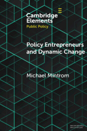 «Policy entrepreneurs are energetic actors who engage in collaborative efforts in and around government to promote policy innovations. Interest in policy entrepreneurs has grown over recent years. Increasingly, they are recognized as a unique class of political actors, who display common attributes, deploy common strategies, and can propel dynamic shifts in societal practices. This Element assesses the current state of knowledge on policy entrepreneurs, their actions, and their impacts. It explains how various global forces are creating new demand for policy entrepreneurship, and suggests directions for future research on policy entrepreneurs and their efforts to drive dynamic change.»