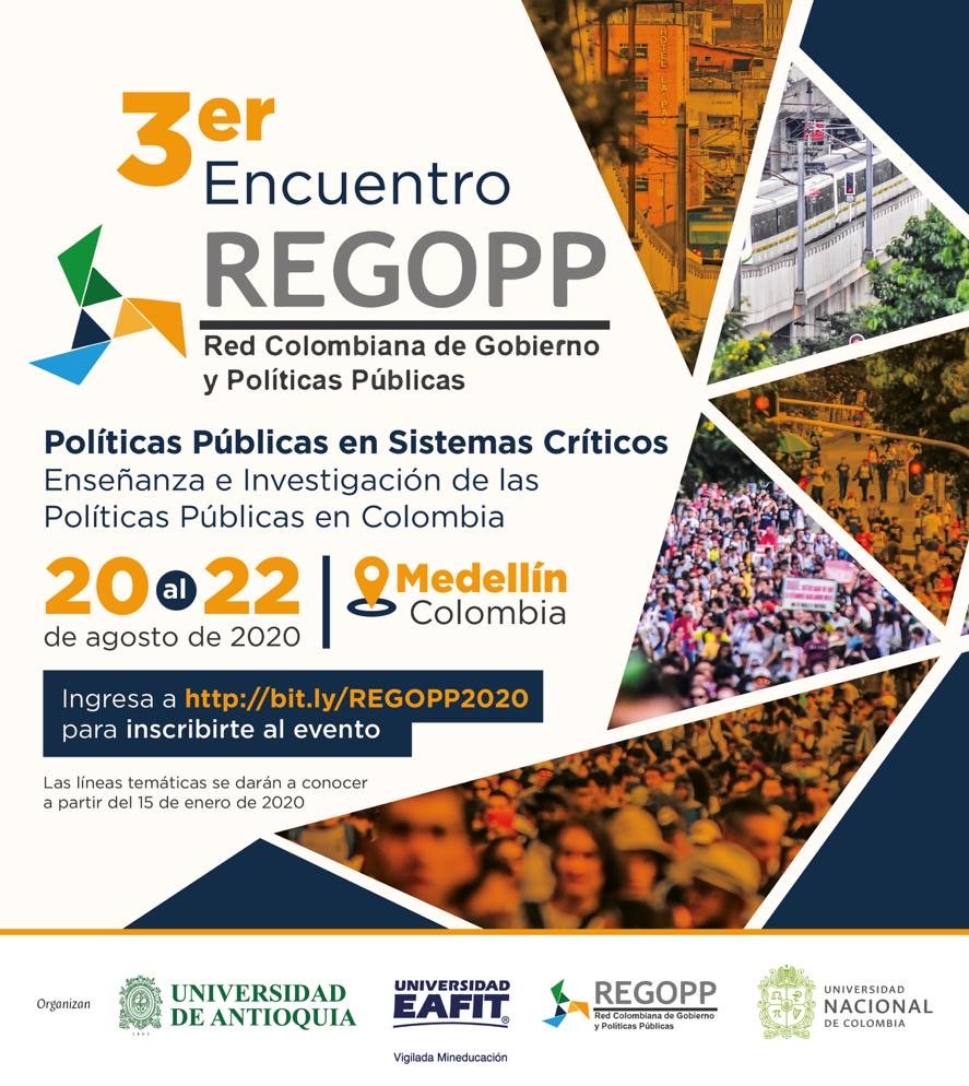 Ya está en marcha la organización del Tercer encuentro de la Red Colombiana de Gobierno y Políticas Públicas (REGOPP) que tendrá lugar en Medellín y estará a cargo de U. Nacional, U. de Antioquia y U. EAFIT.