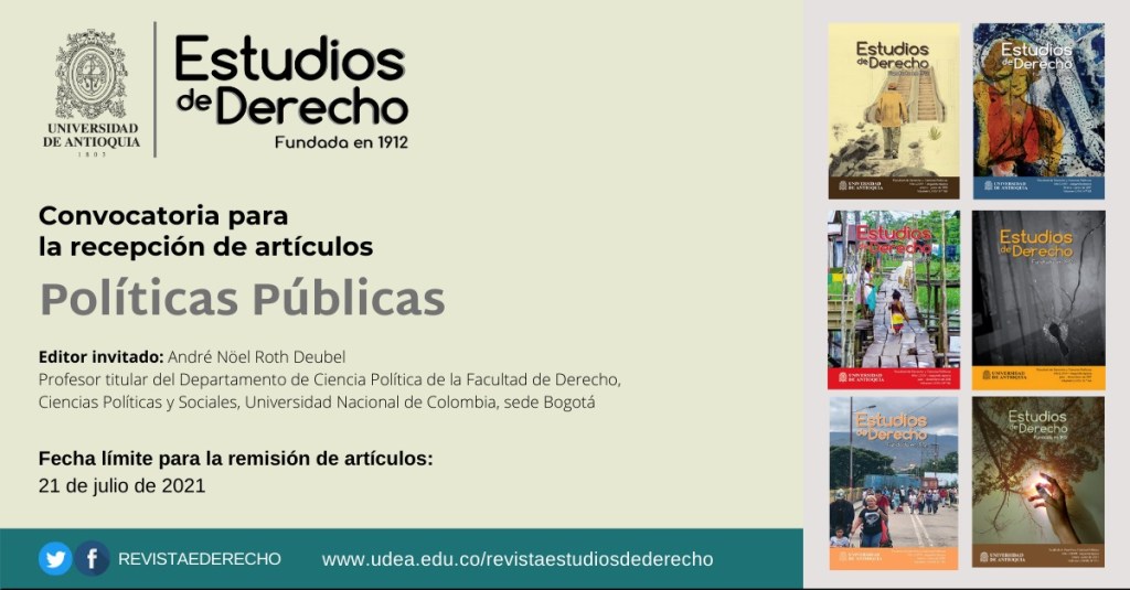 La Revista «Estudios de Derecho» de la Universidad de Antioquia abrió una convocatoria para participar en su número especial sobre Políticas Públicas, que tendrá como editor invitado al profesor André-Noël Roth. La convocatoria cierra el 21 de julio de 2021.