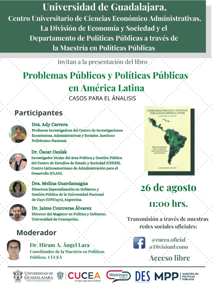 20 agosto, 202118 agosto, 2021 Juan David Gutiérrez R. Presentación del libro: «Problemas públicos y políticas públicas en América Latina: Casos para el análisis: (26 de agosto) Compártelo: Haz clic para compartir en X (Se abre en una ventana nueva) X Haz clic para compartir en Facebook (Se abre en una ventana nueva) Facebook Me gusta Cargando... Relacionado