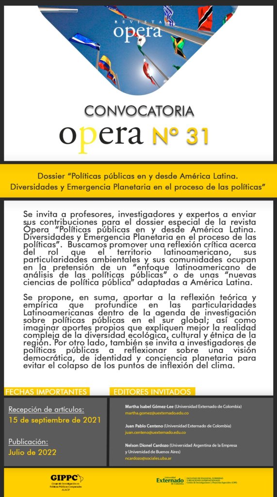 ¿Qué políticas públicas podrían mitigar la emergencia climática desde América Latina? Esta es una de las preguntas centrales plateanteadas en la convocatoria del próximo dossier especial de la Revista OPERA: «Políticas públicas en y desde América Latina. Diversidades y Emergencia Planetaria en el proceso de las políticas«.