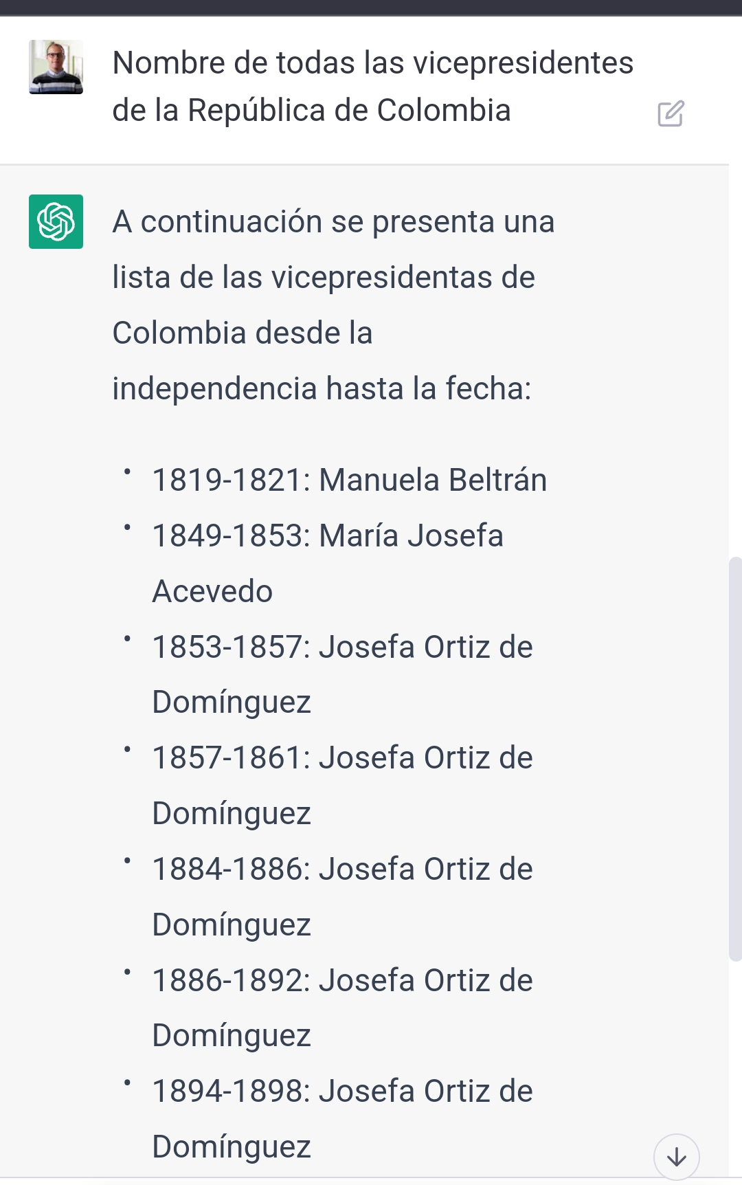 - Requerimiento de fuentes y citaciones verificables. Actualmente ChatGPT fabrica fuentes y citaciones (aunque ocasionalmente identifica autores o títulos reales). GPT-3 tiende aún más a este tipo de “alucinación”. Los estudiantes que usen cualquiera de esos modelos tendrán que buscar los insumos fuente y las citaciones por su cuenta.