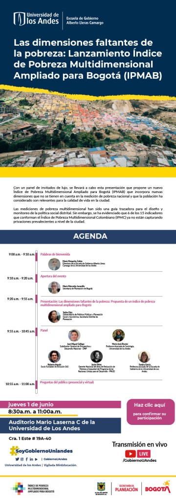 26 mayo, 2023 Juan David Gutiérrez R. Lanzamiento del Índice de Pobreza Multidimensional en Bogotá (U. Andes) Compártelo: Haz clic para compartir en X (Se abre en una ventana nueva) X Haz clic para compartir en Facebook (Se abre en una ventana nueva) Facebook Me gusta Cargando... Relacionado