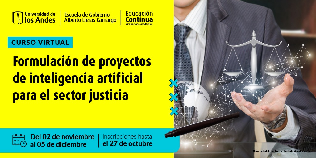 Más información sobre valor, intensidad horaria, contenido del curso, y perfil de los profesores: https://educacioncontinua.uniandes.edu.co/es/programas/formulacion-de-proyectos-de-inteligencia-artificial-para-el-sector-justicia