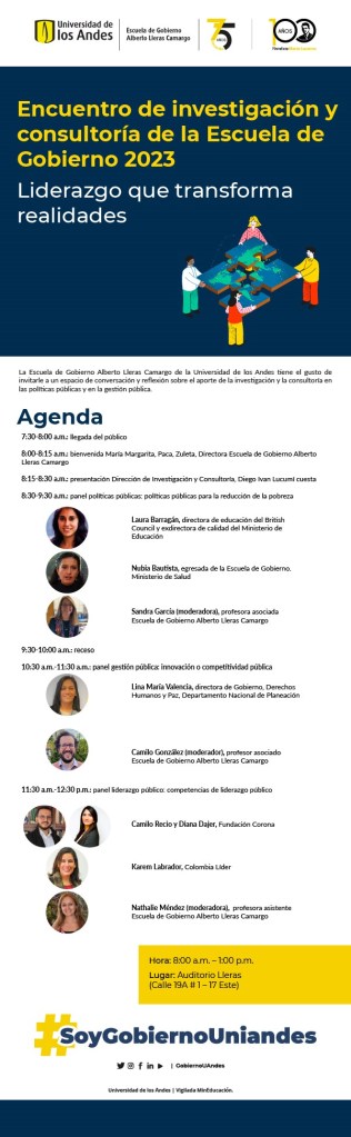17 octubre, 202317 octubre, 2023 Juan David Gutiérrez R. Encuentro de investigación y consultoría de la Escuela de Gobierno Alberto Lleras Camargo de la Universidad de los Andes 2023 Más información: https://evento.uniandes.edu.co/es/encuentro-de-investigacion Compártelo: Haz clic para compartir en X (Se abre en una ventana nueva) X Haz clic para compartir en Facebook (Se abre en una ventana nueva) Facebook Me gusta Cargando... Relacionado
