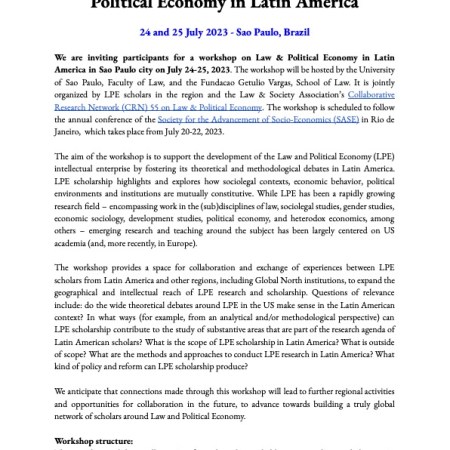 Call for Papers: Workshop on Law & Political Economy in Latin America (24 and 25 July 2023 – Sao Paulo, Brazil)
