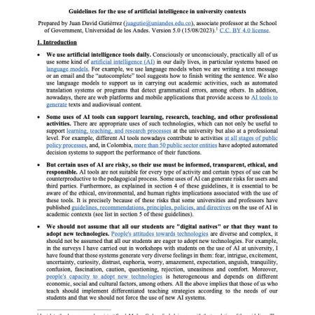 15 agosto, 202321 agosto, 2023 Juan David Gutiérrez R. «Guidelines for the use of artificial intelligence in university contexts (version 5.0)»