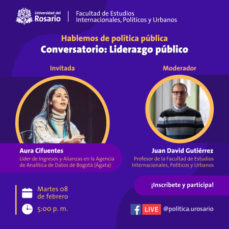 4 febrero, 2022 Juan David Gutiérrez R. Conversatorio sobre «Liderazgo Público» con Aura Cifuentes (8 feb., U. del Rosario)